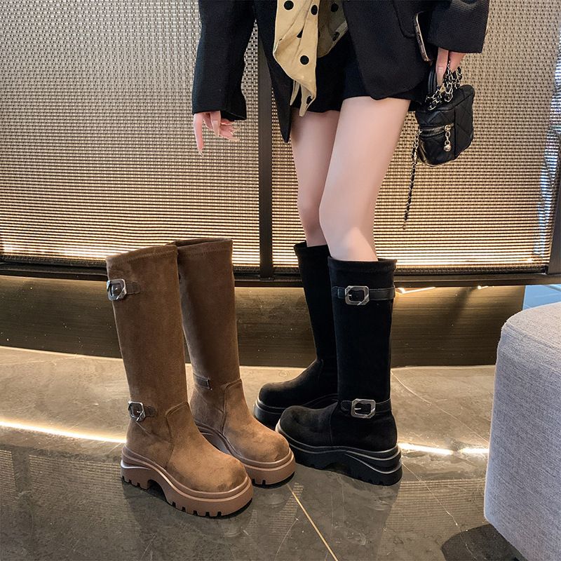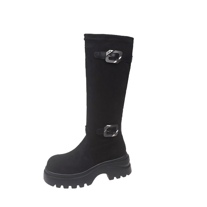 時尚 彈力襪靴加絨保暖厚底增高瘦瘦靴女 24冬新款 大東彈力靴女鞋