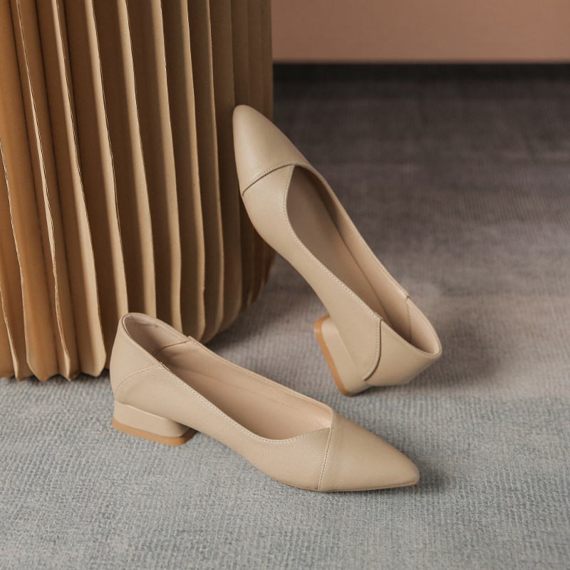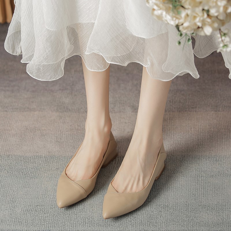 溫柔風氣質(zhì)女鞋 裸色單鞋 內(nèi)增高法式 尖頭淺口平底鞋 女2025新款 春季