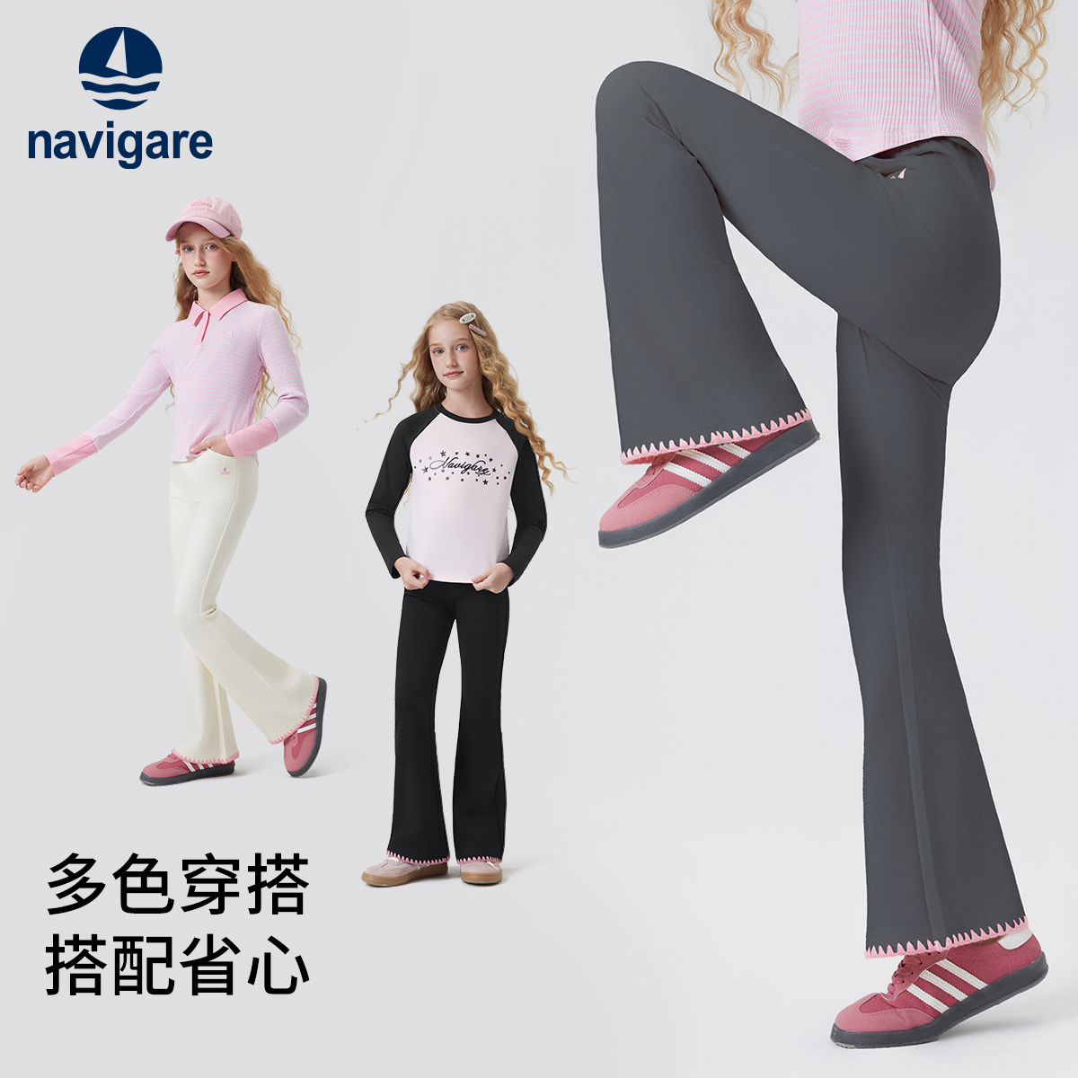 運動休閑褲 Navigare意大利小帆船女童褲 子2025新款 秋季 女孩喇叭褲由