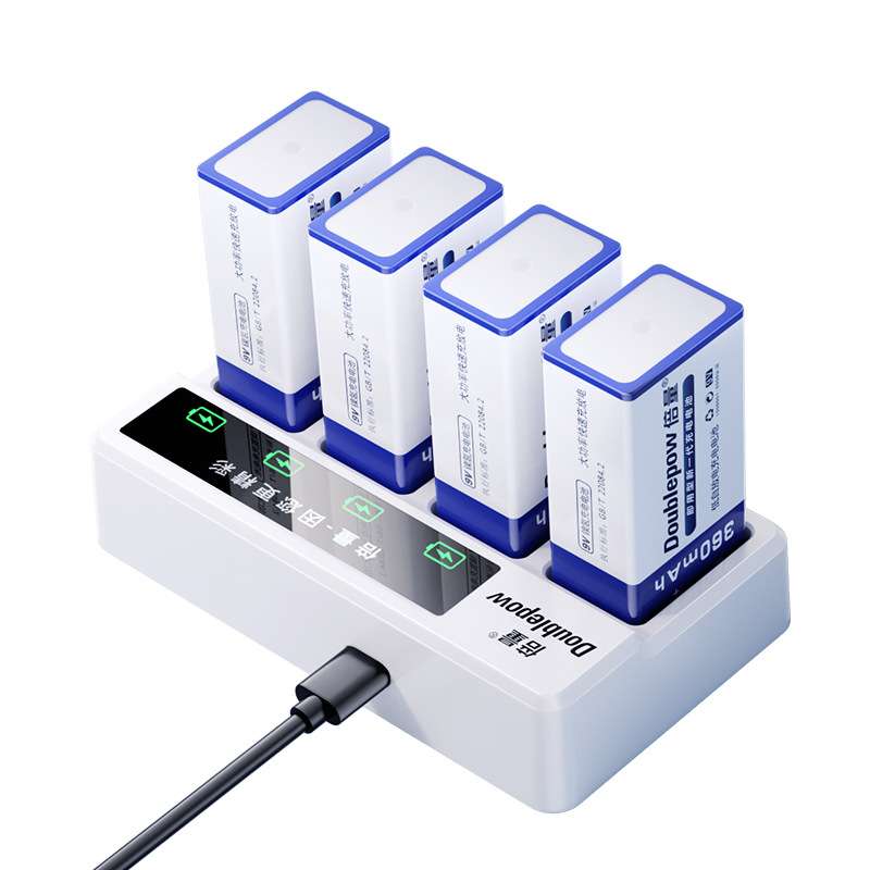 配4節(jié)鎳氫電池LED顯示智能快充可充電 倍量9V充電電池套裝由