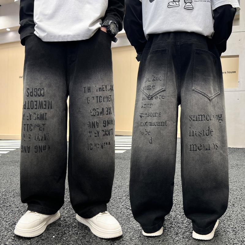 青春期中大童韓范炸街男生高級感網紅直筒褲 酷炫 春秋款 男童牛仔褲由