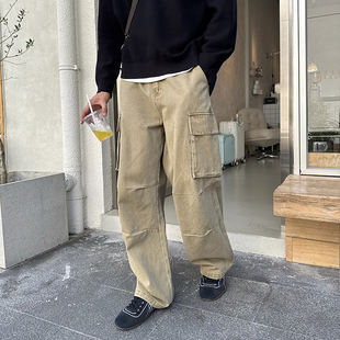褲 馬克斯星球 松緊腰水洗厚傘兵褲 工裝 簡約寬松直筒休閑 男秋冬款由