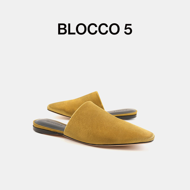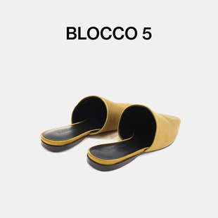 BLOCCO5女鞋 時尚 休閑一腳蹬包頭平底穆勒鞋 淺口方頭單鞋由