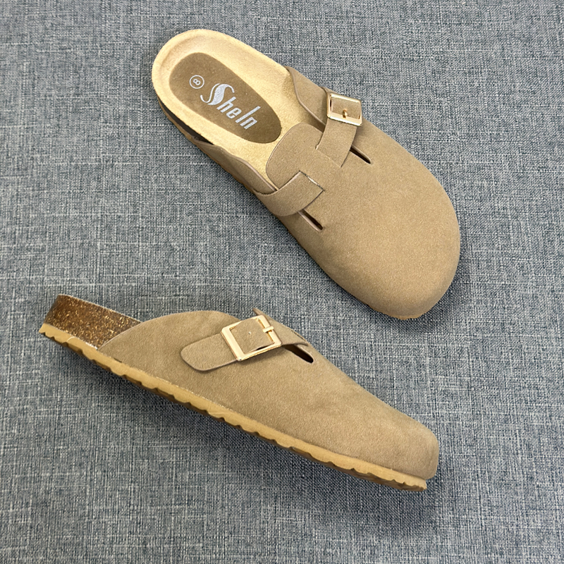 女春秋厚底平底外穿懶人鞋 外貿2025網紅同款 勃肯鞋 包頭拖鞋 半拖鞋由