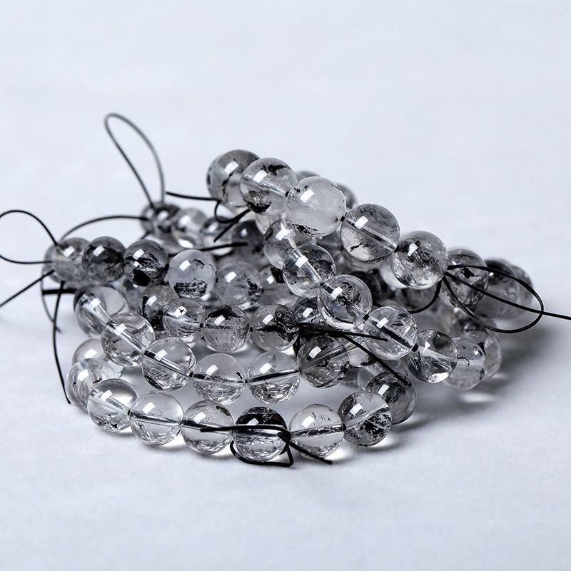 天然原礦閃靈鉆水晶散珠包裹體礦物質水晶diy水晶單顆圓珠黑膽石由