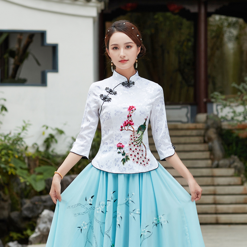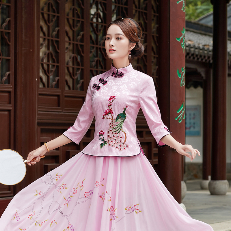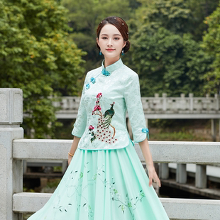民國復(fù)古唐裝 繡花茶藝服 改良旗袍兩件套女上衣春夏漢服中國風(fēng)大碼由