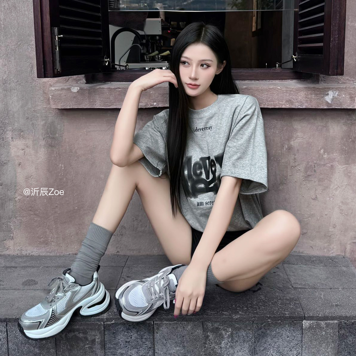 瑪速主義2025新款 女秋輕便運動鞋 休閑跑步鞋 ins潮厚底銀色老爹鞋