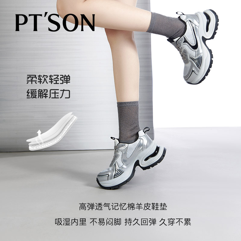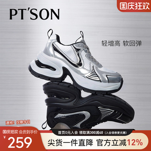 增高女士運動鞋 百田森商場同款 新款 厚底休閑鞋 時尚 銀色老爹鞋由