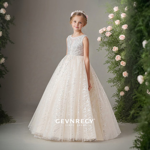 女童禮服高端亮片綁帶網(wǎng)紗蓬蓬生日公主裙小女孩鋼琴主持人演出服由