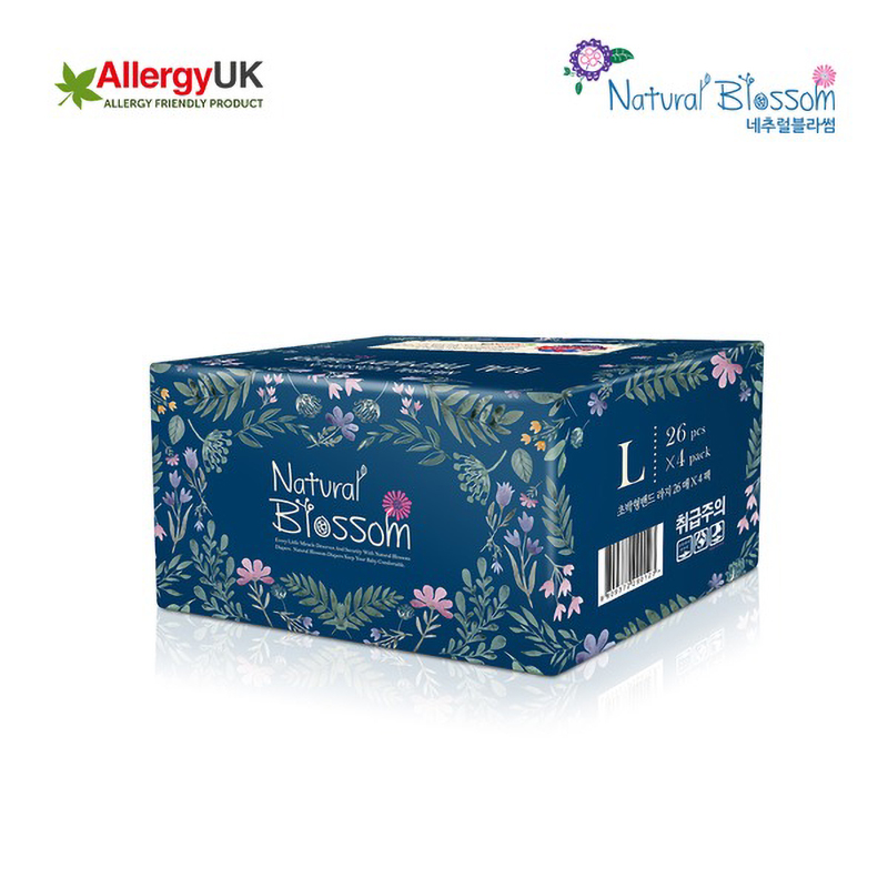 韓國進口自然花蕾L碼 純棉超薄透氣寶寶通用尿不濕 96片嬰兒紙尿褲由