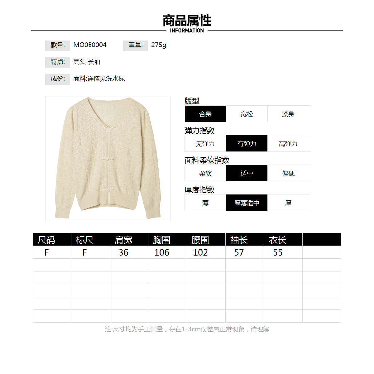 知性素雅長袖 2025年秋裝 Outlets專柜 MO系列 女 上衣套頭V領(lǐng)針織衫由