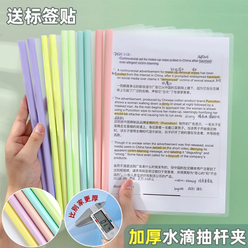 得力抽桿夾A4拉桿夾加厚文件夾插頁書夾子試卷書皮文具大容量資料夾學生水滴桿收納冊辦公檔案報告彩色夾
