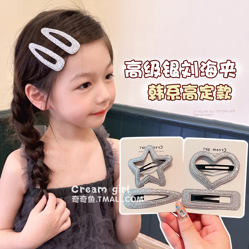 女童銀色星星愛心發夾寶寶劉海碎發BB夾小女孩前額頭飾兒童發卡女由