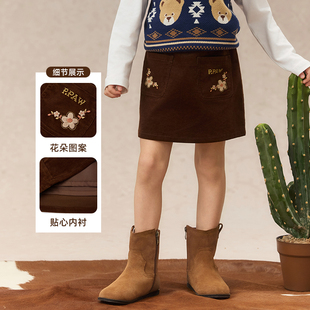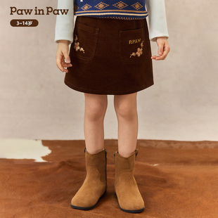 PawinPaw卡通小熊童裝 新款 女童A字版 型半裙短裙學院風 25年秋季由