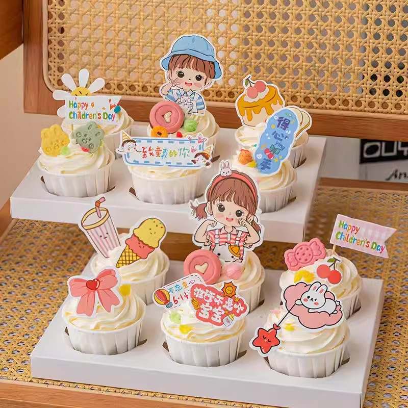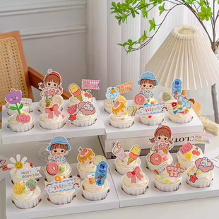 61兒童節(jié)快樂網(wǎng)紅紙杯蛋糕裝 扮插件 飾比耶男孩捏臉女孩六一甜品裝由
