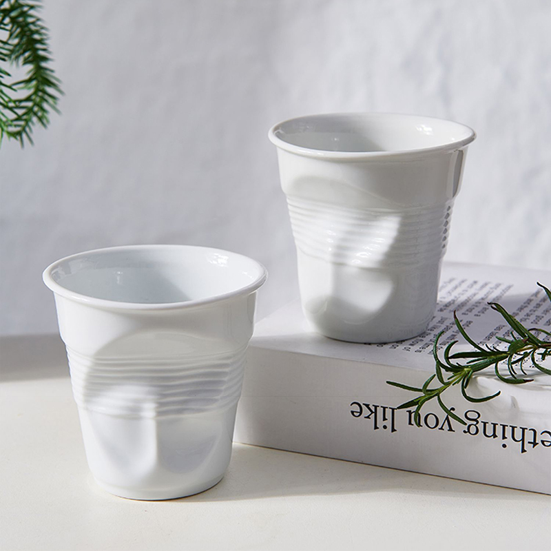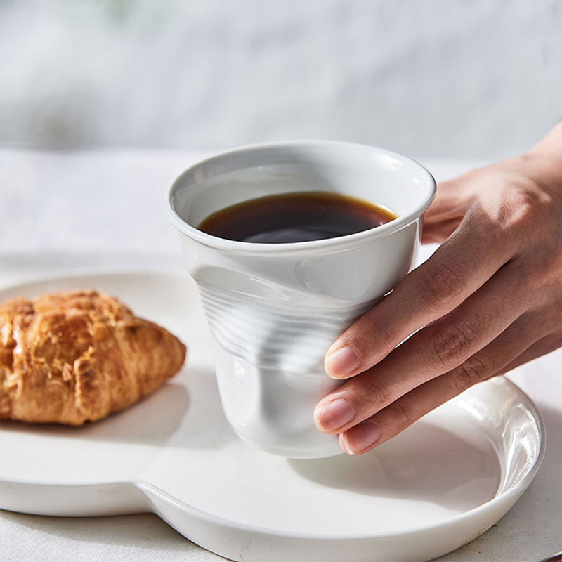 簡約不規則辦公隨手杯 褶皺咖啡杯陶瓷異形杯手捏創意拿鐵杯個性由