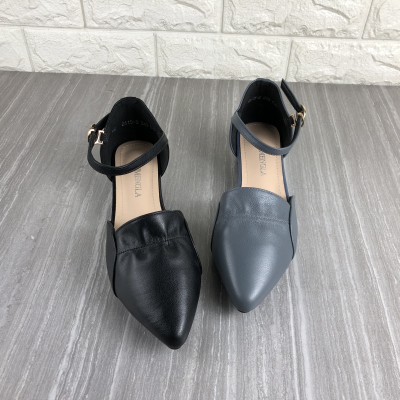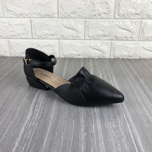 頭層牛皮尖頭淺口一字帶單鞋 新款 斷碼 撤柜處理真皮女鞋 中空女皮鞋由