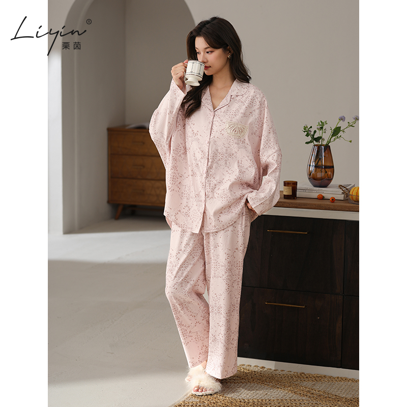 套裝 貓人純棉睡衣女春秋2025新款 冬款 長袖 可外穿家居服 寬松加大碼
