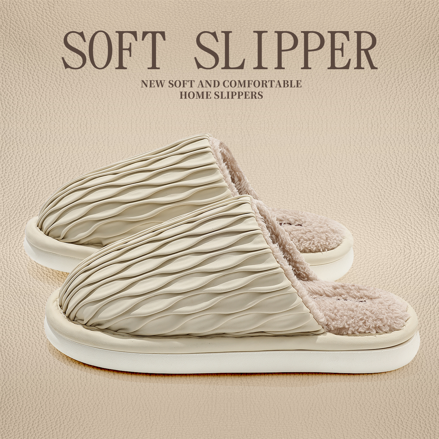 褶皺棉拖鞋 秋冬季 室內(nèi)居家保暖冬天防水皮加絨棉拖男款 女2025新款由