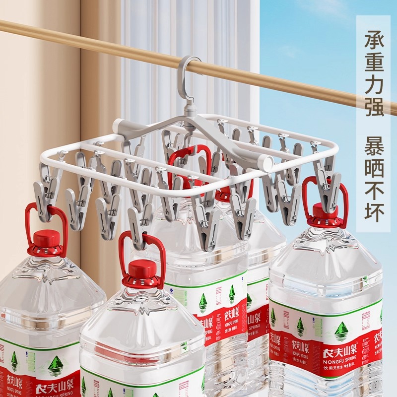 曬襪子神器多功能晾衣夾家用陽(yáng)臺(tái)多夾子衣架掛襪子折疊晾曬架防風(fēng)由
