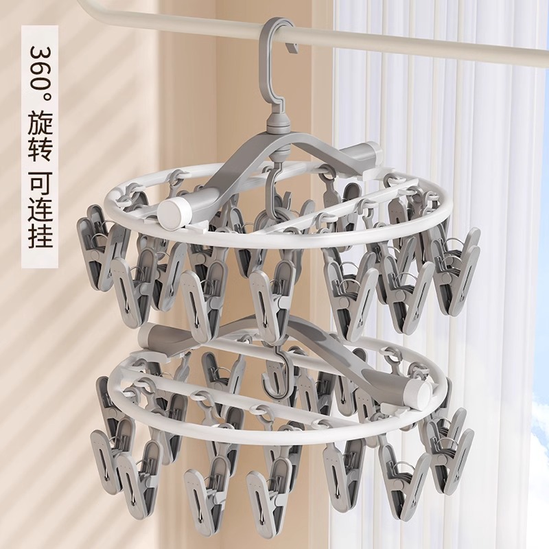 不銹鋼多夾子晾衣架陽(yáng)臺(tái)家用圓形衣架多功能曬襪子神器晾曬架內(nèi)衣