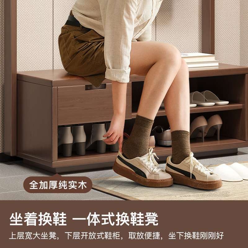 進門實木掛衣架落地臥室可坐簡約多功能客廳衣帽架換鞋 架 凳收納鞋由