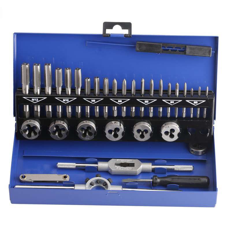 工具手用螺絲攻扳手絞手公制英制圓板牙手動(dòng)套絲 絲錐板牙組合套裝由