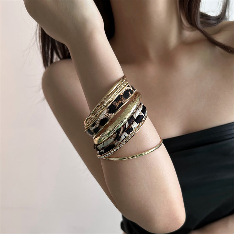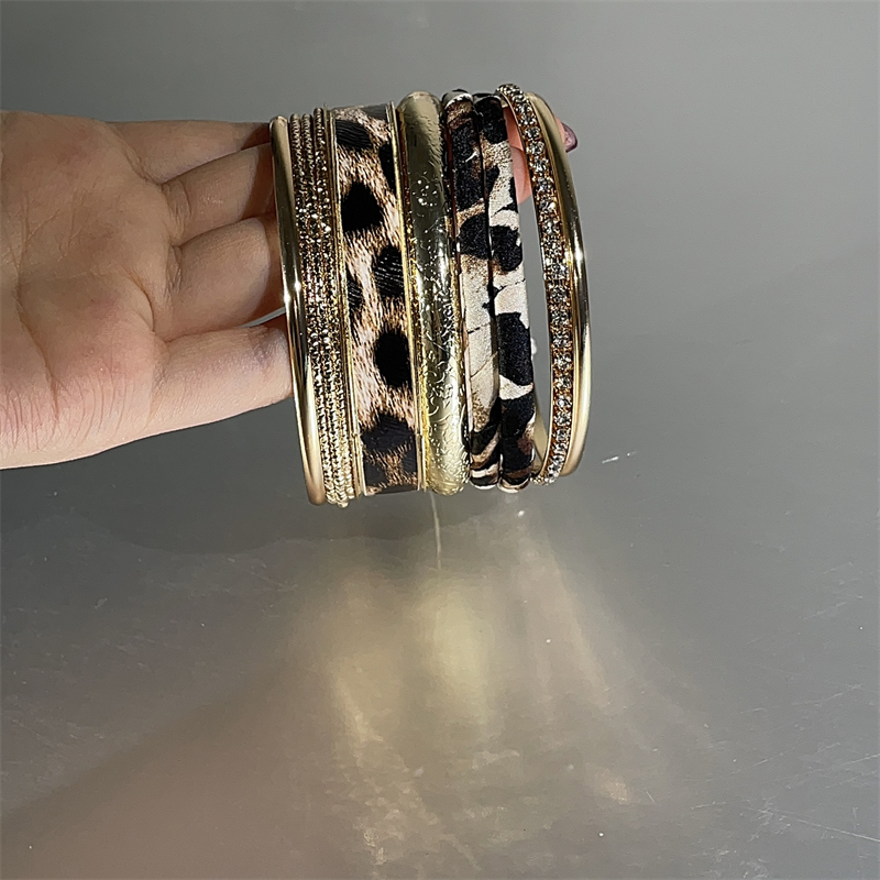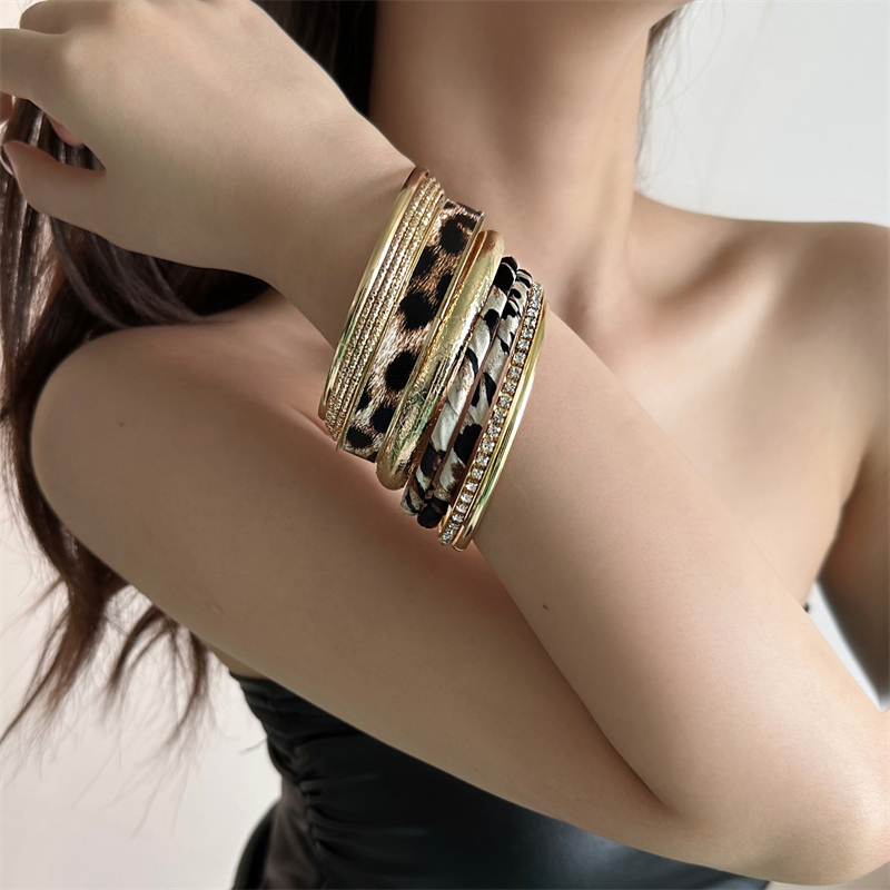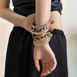 時(shí)尚 大氣手飾 個(gè)性 歐美輕奢風(fēng)多層豹紋微鑲手環(huán)手鐲女2025年新款由