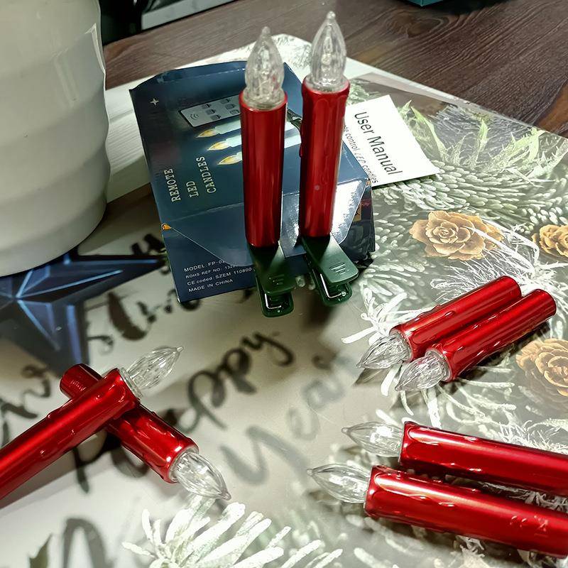 ED蠟燭燈紅色外殼帶夾子定時圣裝 02廠節(jié) 誕樹L桿飾7鍵遙控蠟工FP由