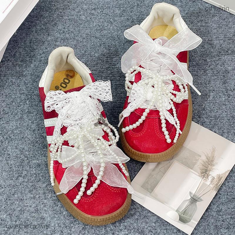 絲帶珍珠鞋 蕾絲鞋 帶女款 德訓鞋 花配件女 帶配飾芭蕾風diy蝴蝶結鞋由