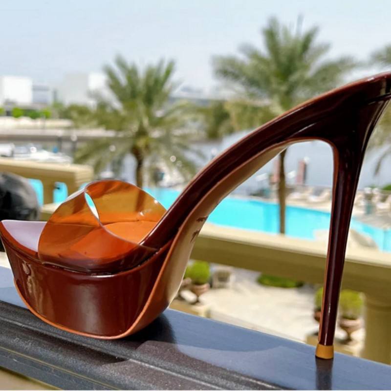 高跟鞋 透明水晶鞋 鞋 子 時尚 粗跟外穿拖鞋 新款 女2025年夏季 涼鞋 時裝