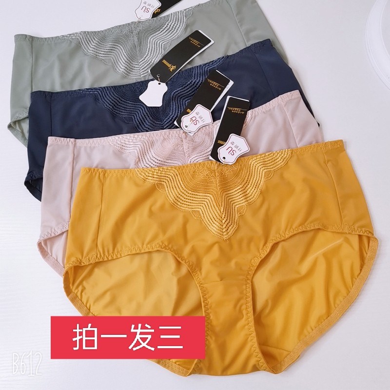 3件 無痕透氣親膚薄真絲莫代爾三角褲 大碼 女 蕉內(nèi)銀皮500E女士內(nèi)褲