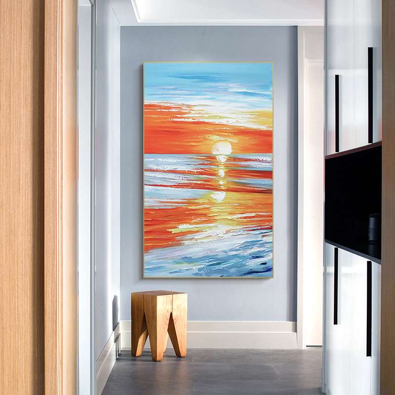 玄關掛畫過道入戶抽象裝 飾畫現代簡約輕奢手工畫 朝陽 手繪油畫由
