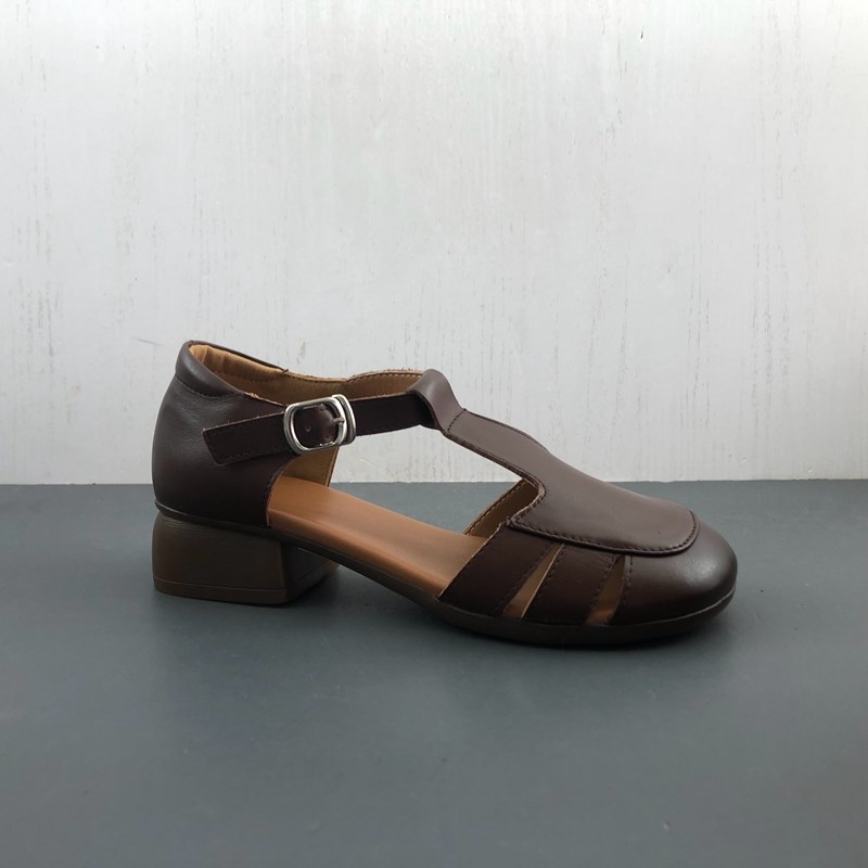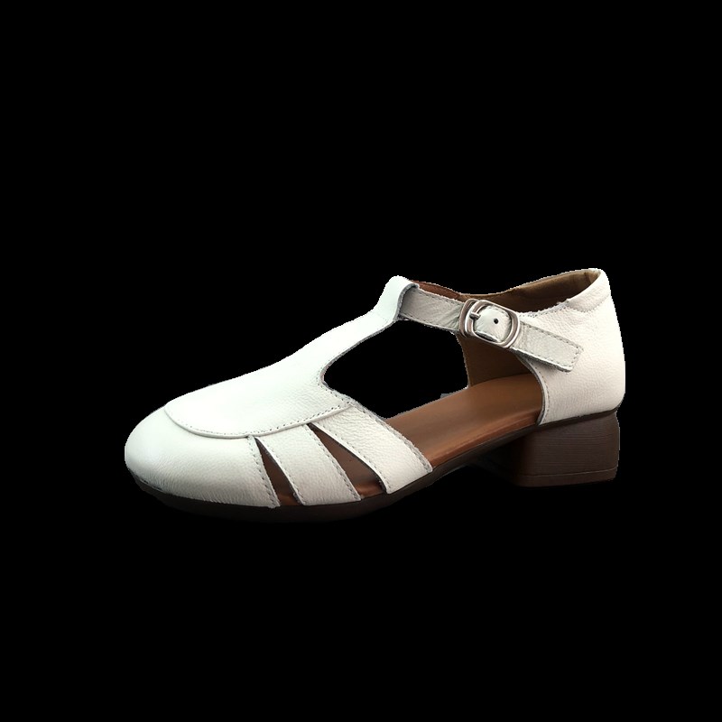 新款 工廠斷碼 真皮女鞋 夏季 w日常舒適簡約圓頭中空扣帶牛皮女單鞋由