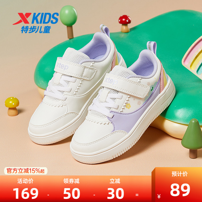 運動鞋 特步兒童女童鞋 板鞋 春秋女孩幼兒園休閑鞋 子 防滑軟底寶寶鞋由