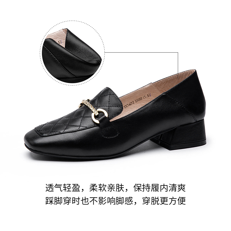 新款 女春秋季 中跟粗跟職業(yè)樂(lè)福鞋 真皮單鞋 上班通勤鞋 時(shí)尚 沙馳女鞋由