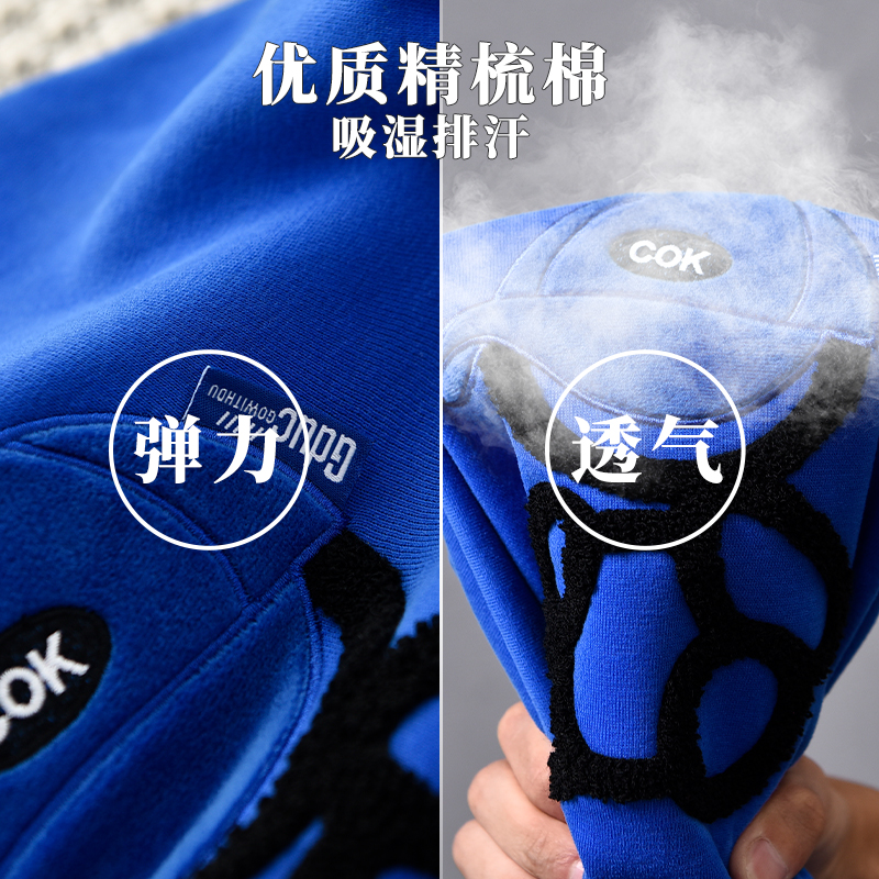 韓版 洋氣運動炸街潮 毛巾刺繡中大童裝 男童衛(wèi)衣春秋棉上衣2025新款由