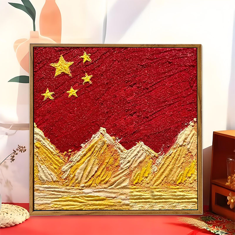 飾畫 國慶節石英砂丙烯肌理畫材料diy愛國主題數字油畫手工填色裝由