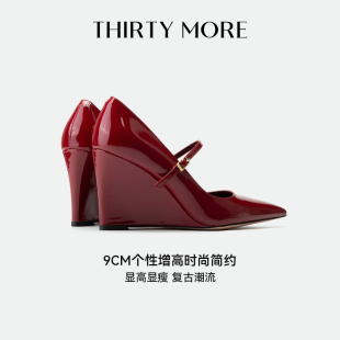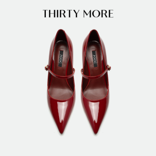Thirty 女2025秋冬新款 一字扣帶坡跟淺口氣質(zhì)單鞋 More尖頭高跟鞋由