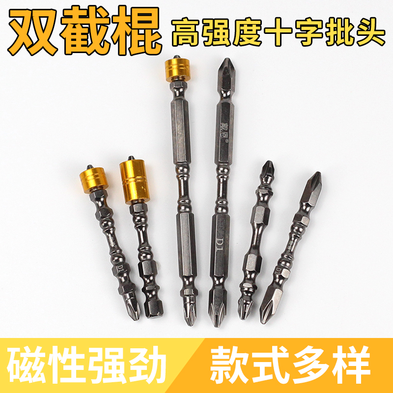 雙截棍高硬度磁性十字批頭鎢鋼雙頭電動螺絲起子頭強磁超耐磨磁圈由
