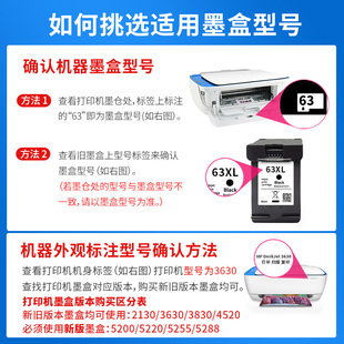 3630 63適用惠普hp63XL 彩色F6U61A 黑色 4520 5258 5258打印機 3632 3830 4650 2131 墨盒 F6U62A 2130由