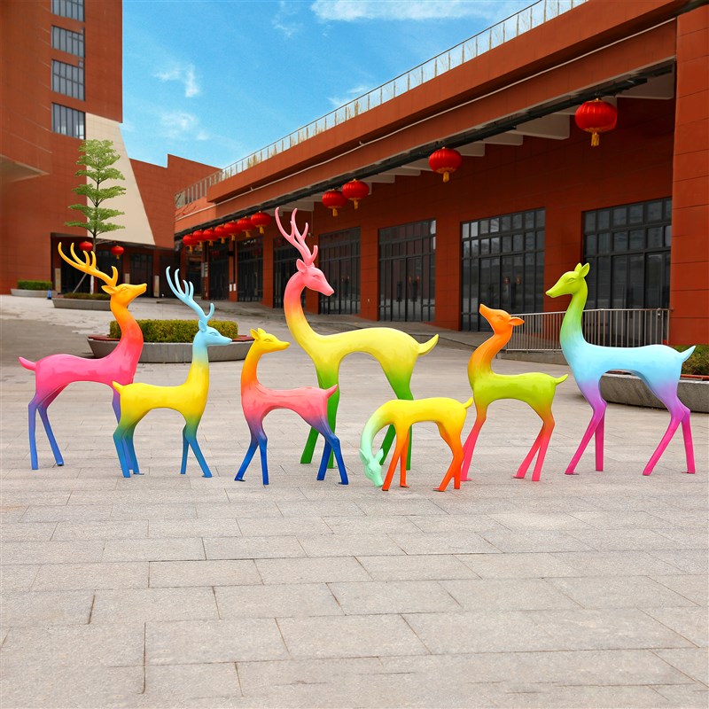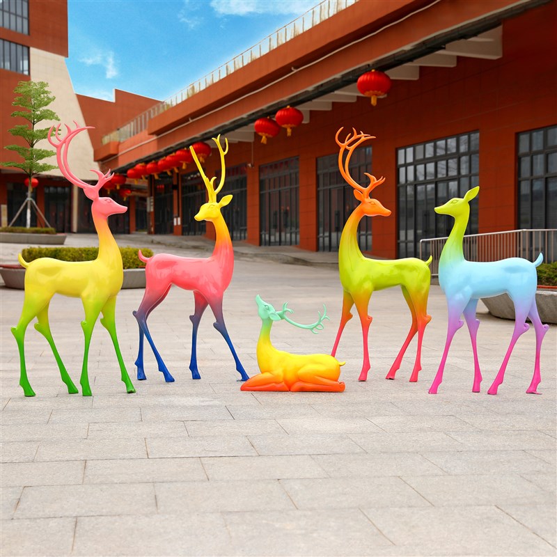 飾擺件玻璃鋼仿真梅花鹿雕塑小鹿擺件 戶外庭院花園林仿真動物裝