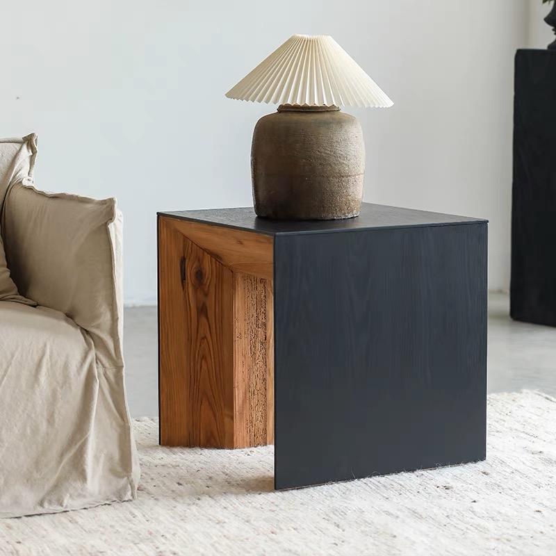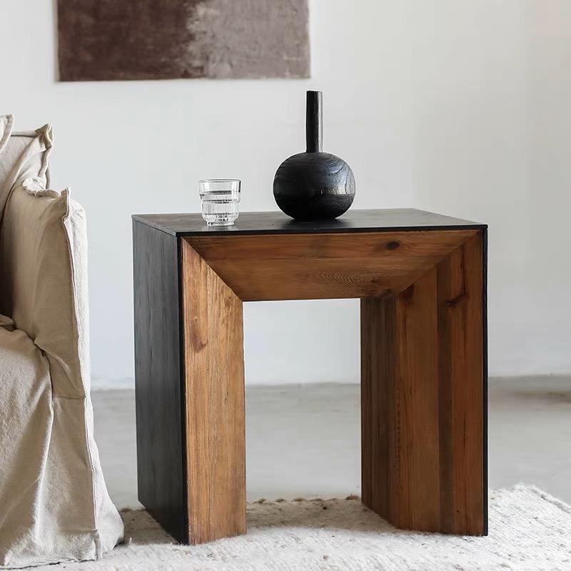 客廳沙發邊幾茶幾黑色極簡實木復古侘寂風老松木原木小邊幾由