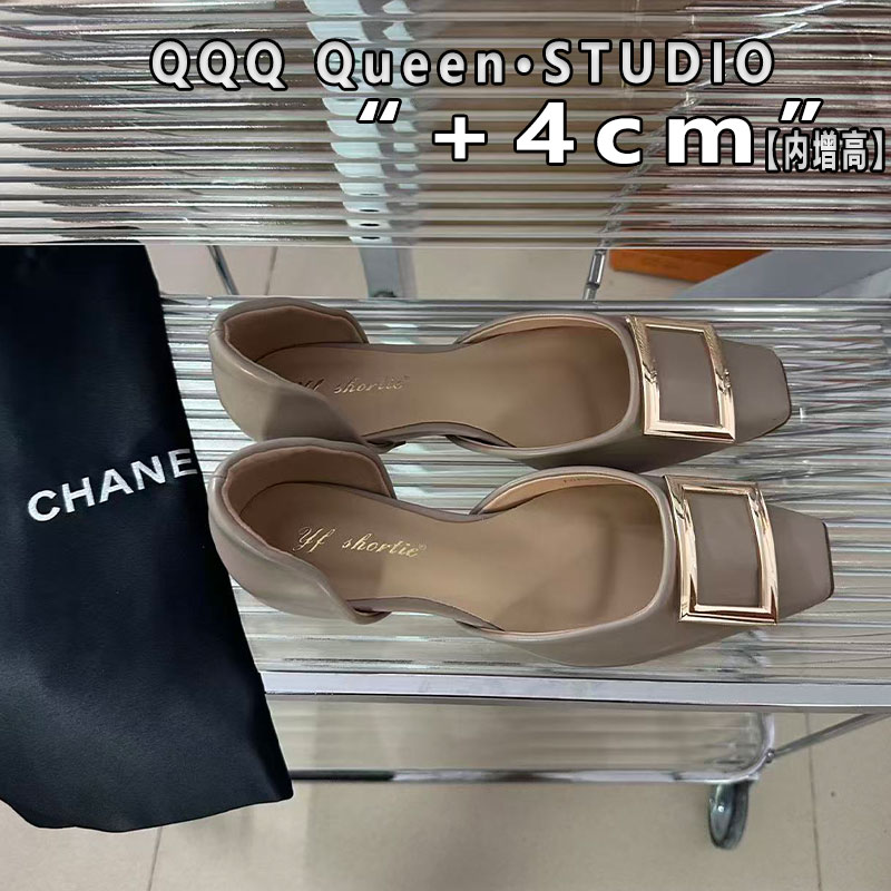 女小個(gè)子通勤風(fēng)淺口真皮內(nèi)增高隱形4cm單鞋 女 Video中空涼鞋 Right由