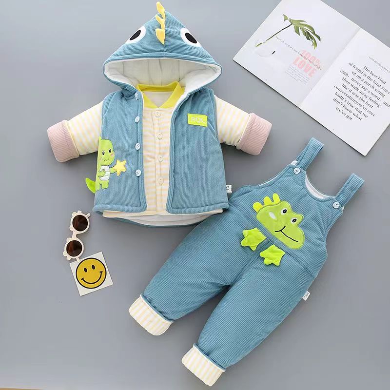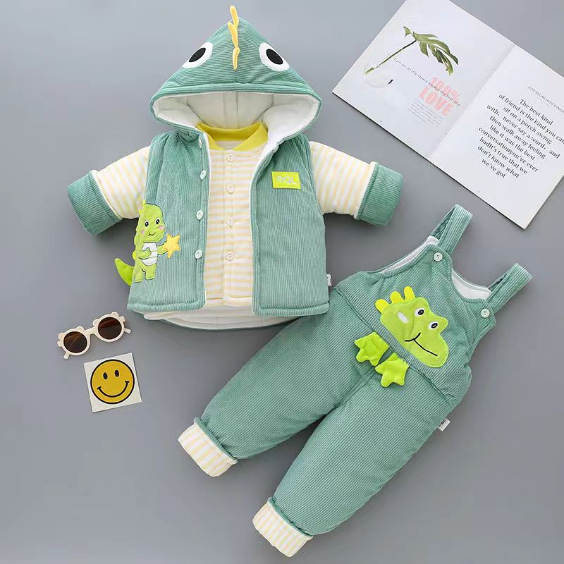 男女寶寶秋冬裝 加厚1歲6個(gè)月背帶褲 冬季 新年 嬰兒棉衣襖三件套裝由