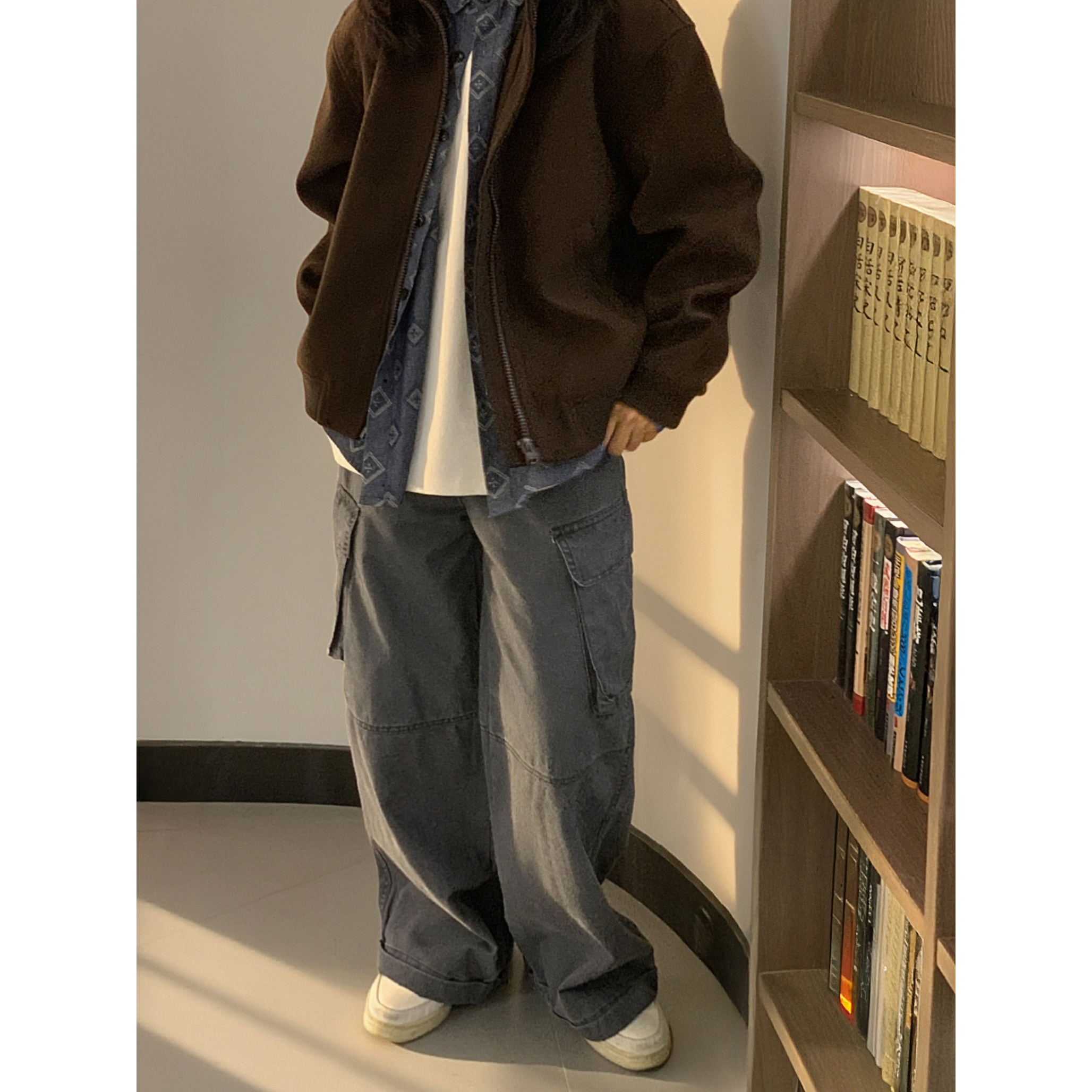 美式 褲 男女秋冬寬松百搭大口袋休閑伐木vintage長褲 子潮 復古工裝由
