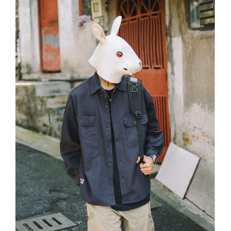 襯衫 兔先森春秋款 日系復(fù)古水洗工裝 長袖 寬松休閑百搭襯衣外套 男裝