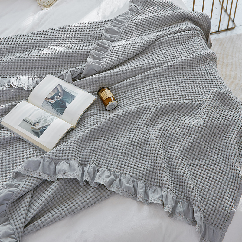 荷葉邊紗布毯子華夫格純棉毛巾被夏涼被單雙人空調(diào)毯子休閑毯 韓式由