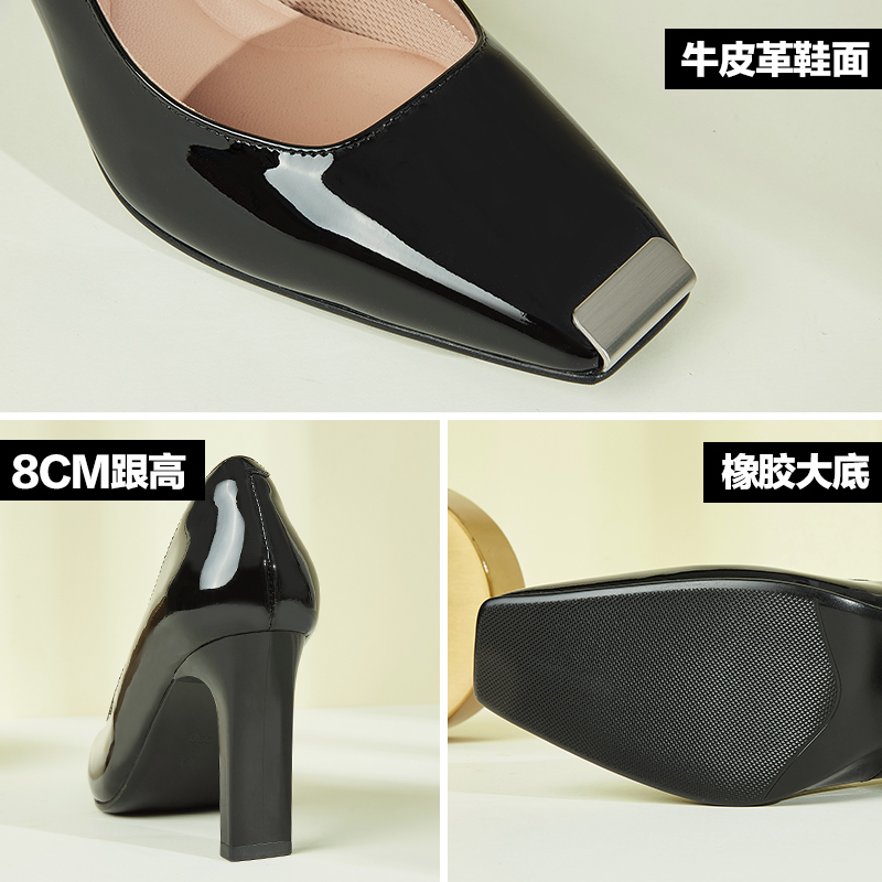 氣質百搭亮漆皮設計感方頭高跟鞋 康奈女鞋 2025年秋季 新款 女 工作鞋由