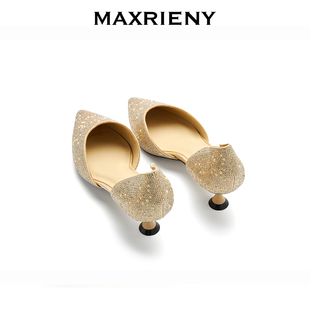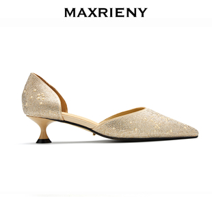 新款 MAXRIENY法式 2025春季 高跟鞋 中空尖頭小跟單鞋 包頭涼鞋由